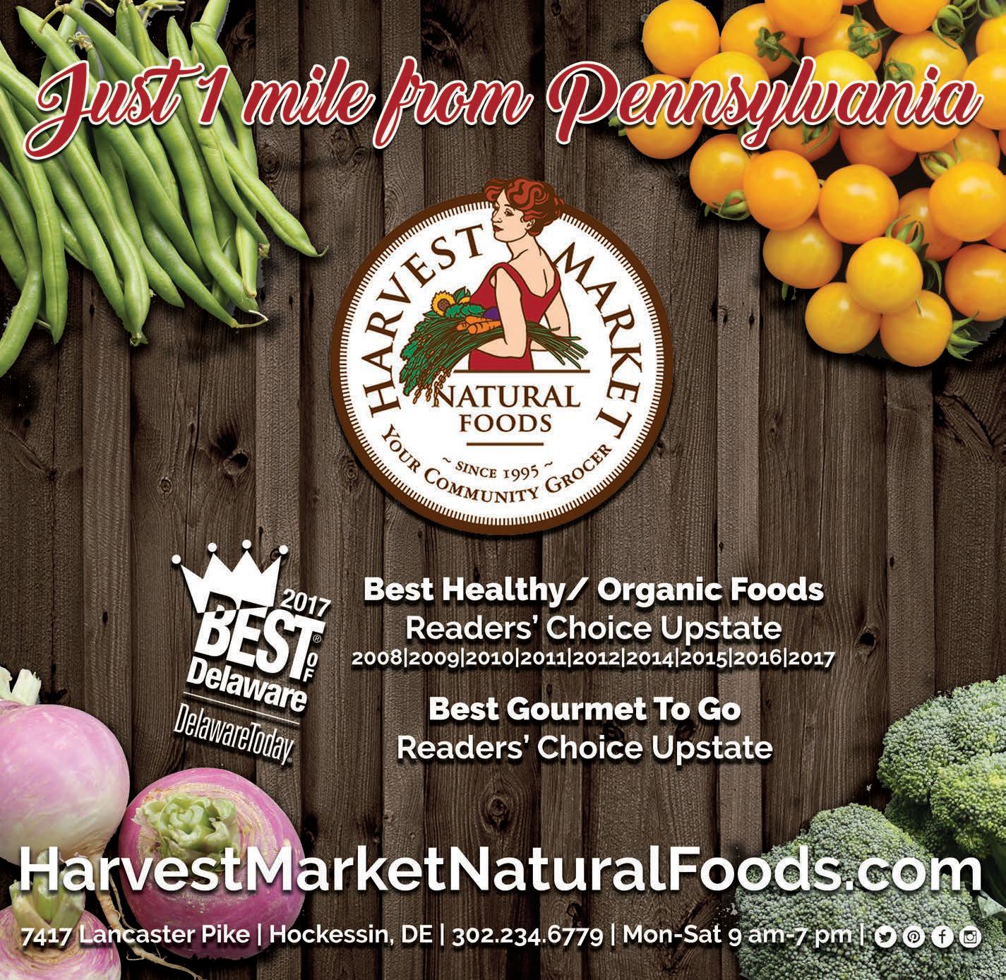 Since 1995, Harvest Market has provided Hockessin and the surrounding communities with a broad selection of wholesome and nourishing foods, nutritional supplements and related products. We receive fresh produce deliveries daily, work with more than 52 local vendors and constantly strive to make a positive difference for farmers, consumers and our environment.