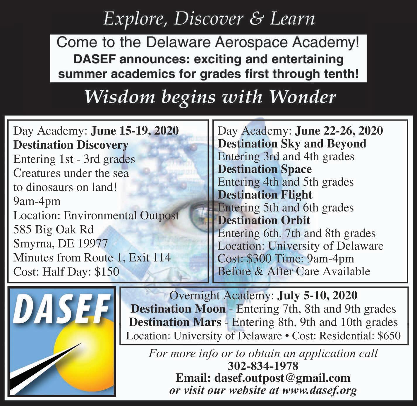 For more information, please visit our website www.dasef.org, email dasef.outpost@gmail.com or call 302.834.1978