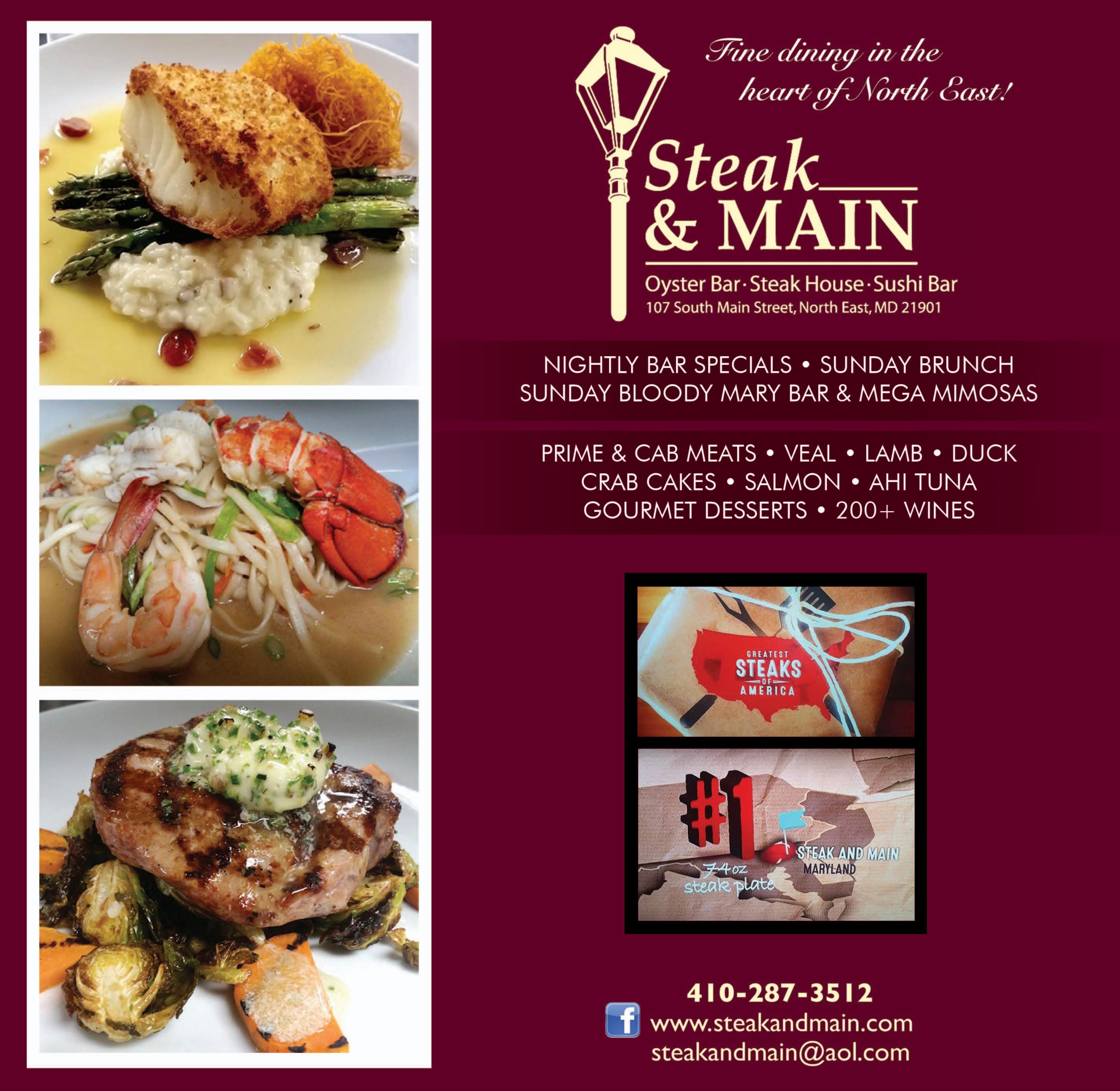 Steak & Main, located in North East, was purchased and remodeled by Tony Covatta in September of 2003. Steak & Main became the crowning star in the culinary world for restaurants between Philadelphia and Baltimore, and a favorite for professional food critics and your everyday gastro-skeptics.