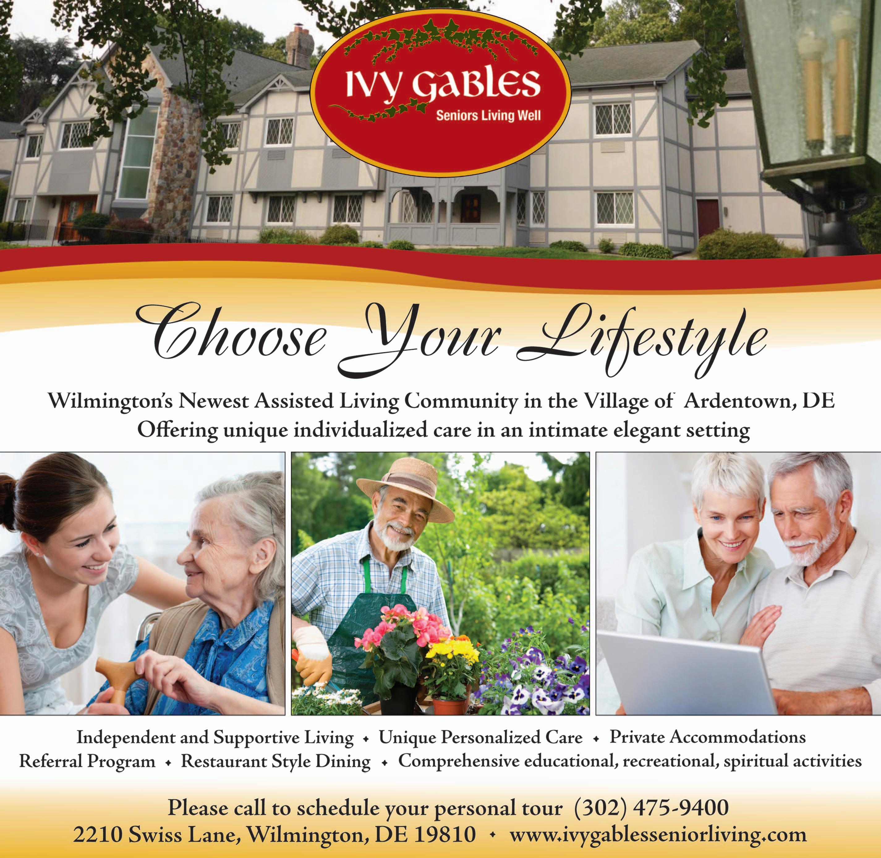 If you’d like to speak with someone directly, or schedule a personal tour and lunch, please call Director of Community Relations, Laurie Seidle at 302-475-9400, or email lseidle@ IvyGablesSeniorLiving.com.