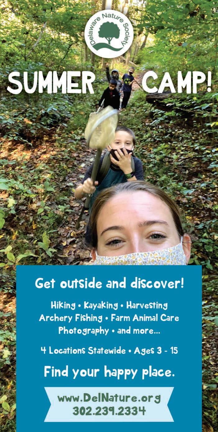 Get ready for a summer full of fun with Delaware Nature Society (DelNature). Our Summer Camps will have children safely exploring and discovering the wonders of nature. Most of all, we guarantee daily doses of fun! Whether your child is a budding naturalist, an outdoor explorer, or a future educator, our camps offer a unique and safe summer experience in natural areas and preserves.