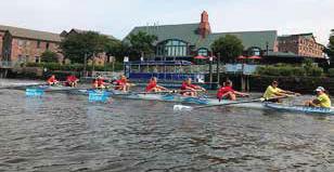 either morning camp from 10-12 noon or afternoon camp from 1-3 pm. Rowers are taught the basics of rowing and racing during the threeweek camp. This includes land-based training and in 60’ racing shells with 12’ oars accompanied at all times by coaches and mentors in launches. The only pre-requisite for all of WYRA’s programs is that rowers pass a basic swimming test. At the conclusion of the 3-week camp a cook-out and races are held for all rowers and their families.