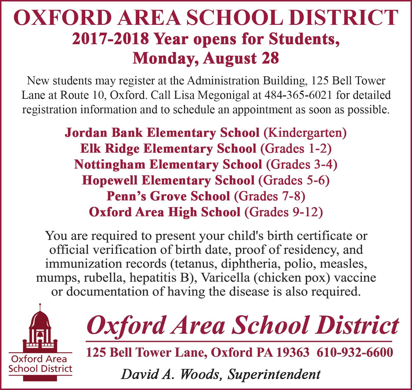 West Fallowfield Christian School is accepting registration for the fall 2017-2018 school year.