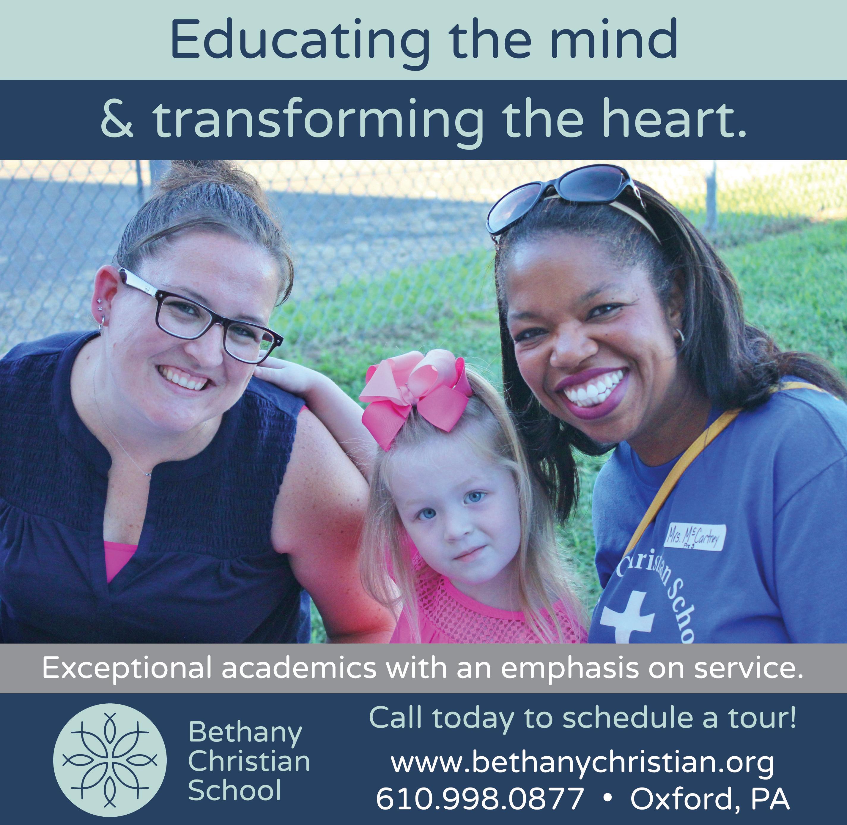 Please call or stop by to visit. Bethany Christian School is located at 1137 Shadyside Drive in Oxford. Our phone number is 610-889-0877. www. BethanyChristian.org.