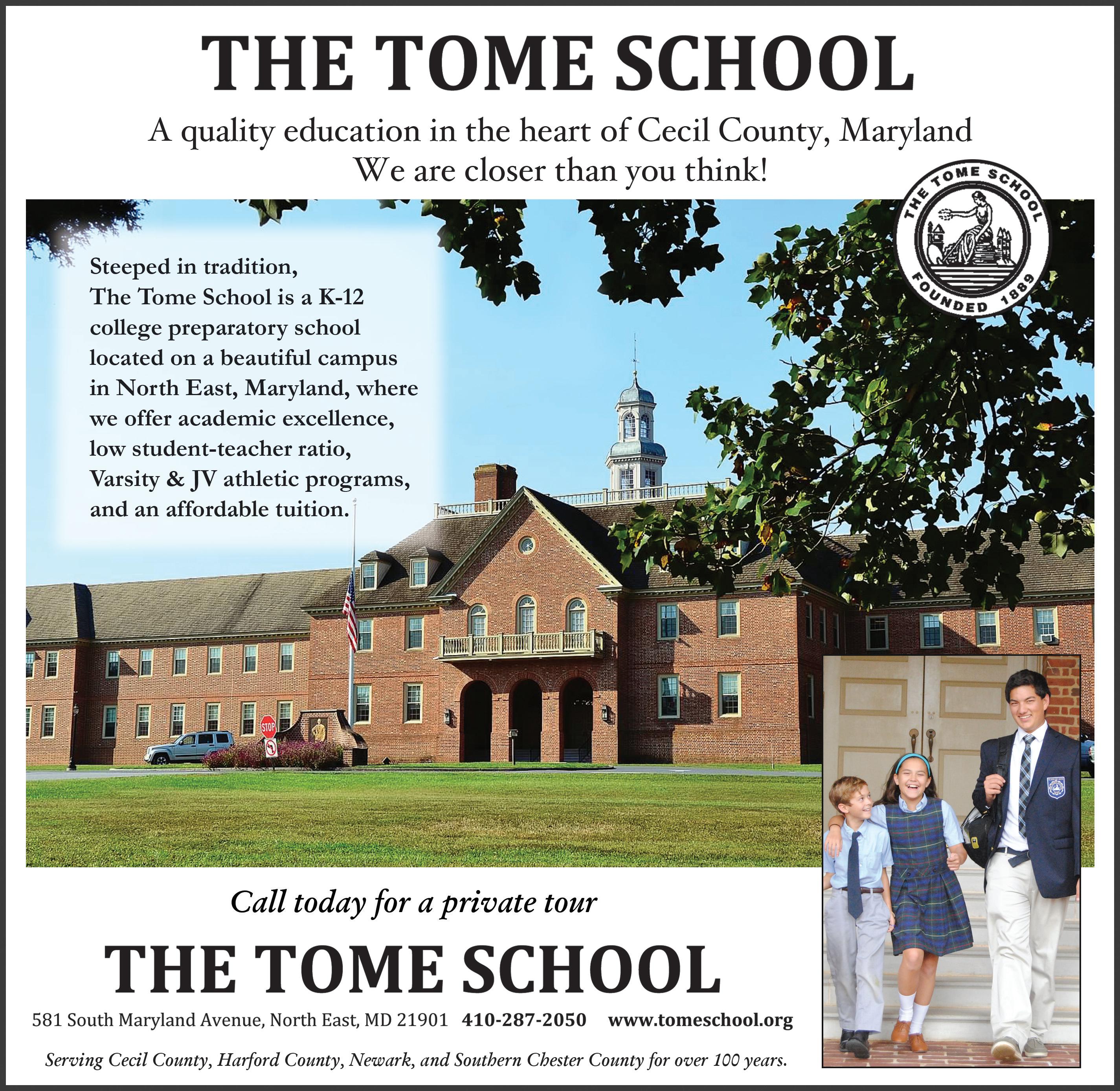 Tome is proud of its long tradition of academic excellence dating back to 1889, when Jacob Tome founded the school in Port Deposit, Maryland. Today, the school enrolls over 450 students from Kindergarten through 12th grade at the Hostetter-Hogue Campus in North East, Maryland. Its rigorous