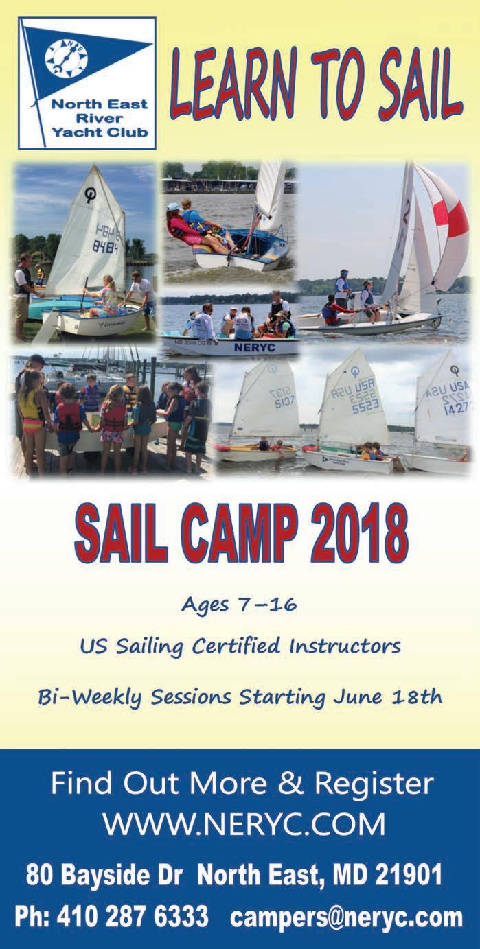 Now in its tenth year, North East River Yacht Club’s popular ‘Learn To Sail’ summer camp is open to boys and girls aged 7 through 16 years. No previous experience is required. The club is situated on the sheltered waters of the Northeast River on the Chesapeake Bay, making it an ideal location for learning to sail. It is also a close and easy commute from all SE Pennsylvania, northern Maryland and Delaware Counties.
