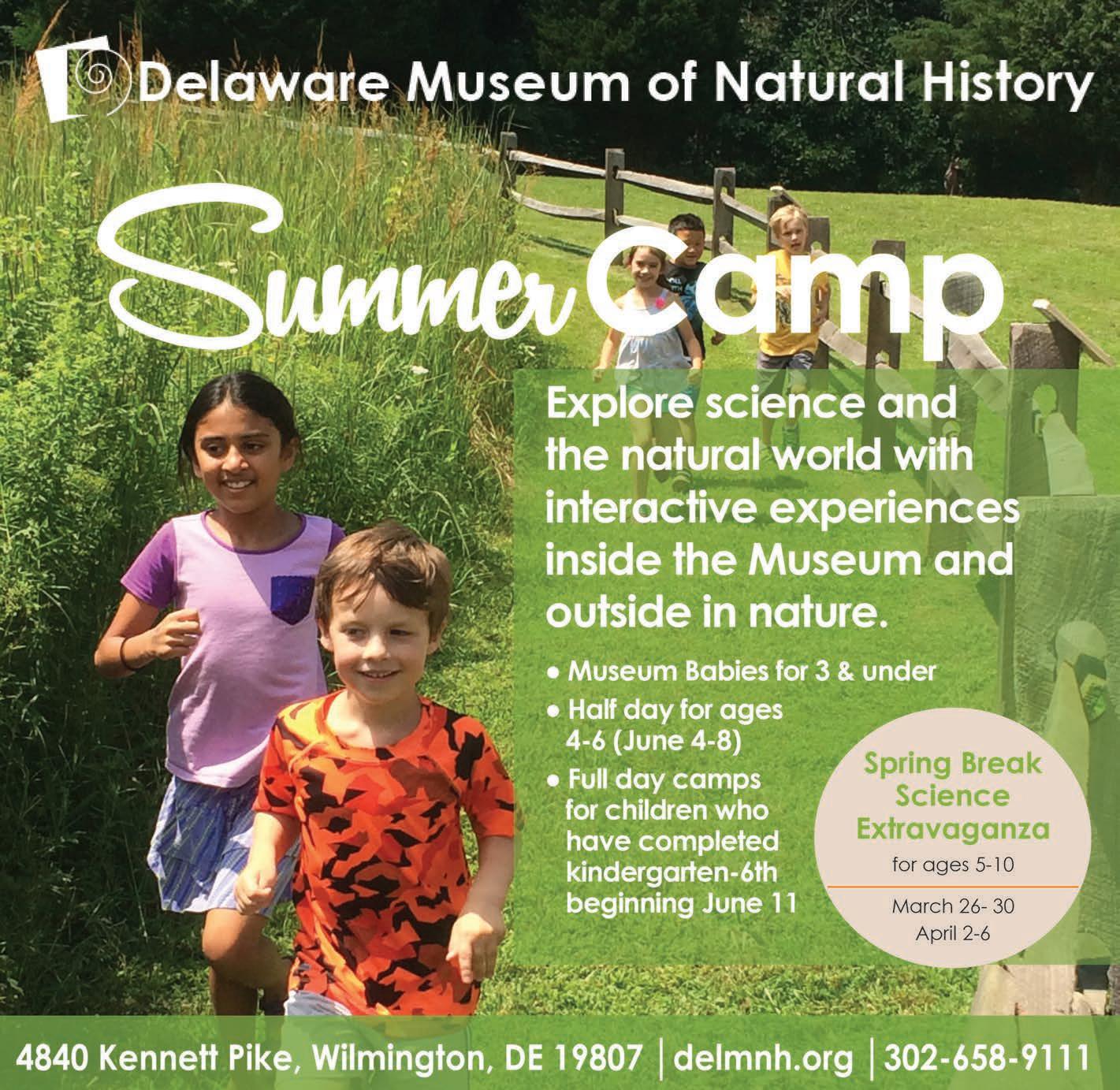 The Delaware Museum of Natural History offers campers of various ages opportunities to explore science and nature through hands-on, interactive learning. At camp, children are encouraged to explore and discover though hands-on, interactive learning and play. Campers spend lots of time outside in our meadow, pollinator garden, wooded hiking trails and wildlife blind as well as inside the museum’s galleries. This year features some of our campers’ favorite camps, tweaked with new handson learning activities, as well as some brand new camps for each age group. All are full of outdoor fun, Museum gallery exploration, traveling exhibit discoveries, live animal experiences, and more.