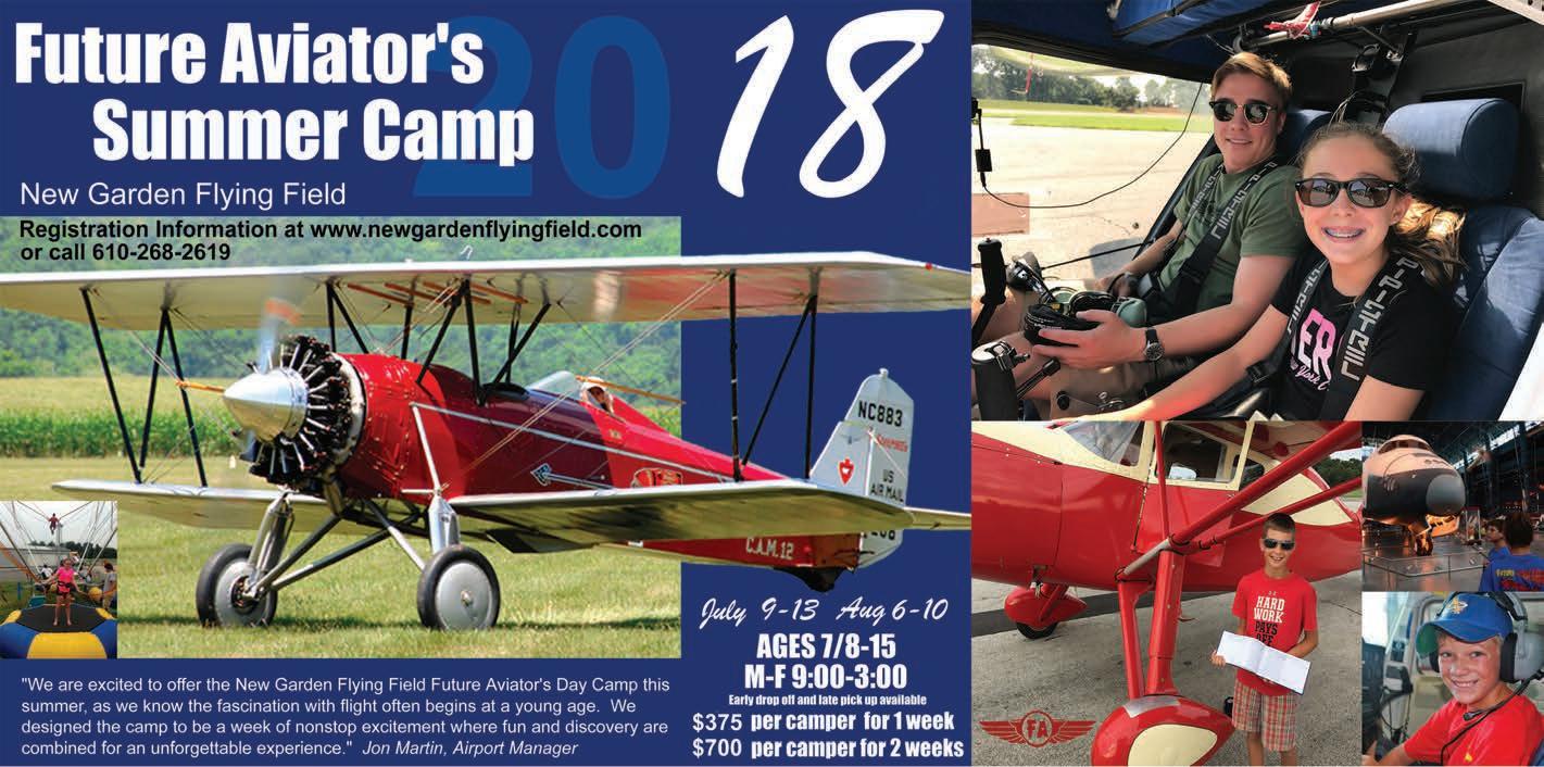 “We are excited to offer the Future Aviator’s Summer Camp, as we know the fascination with flight often begins at a young age,” said Jon Martin, Aviation Director of the New Garden Flying Field. “We have designed the camp to be a week of nonstop excitement where fun and discovery are combined for an unforgettable experience.”