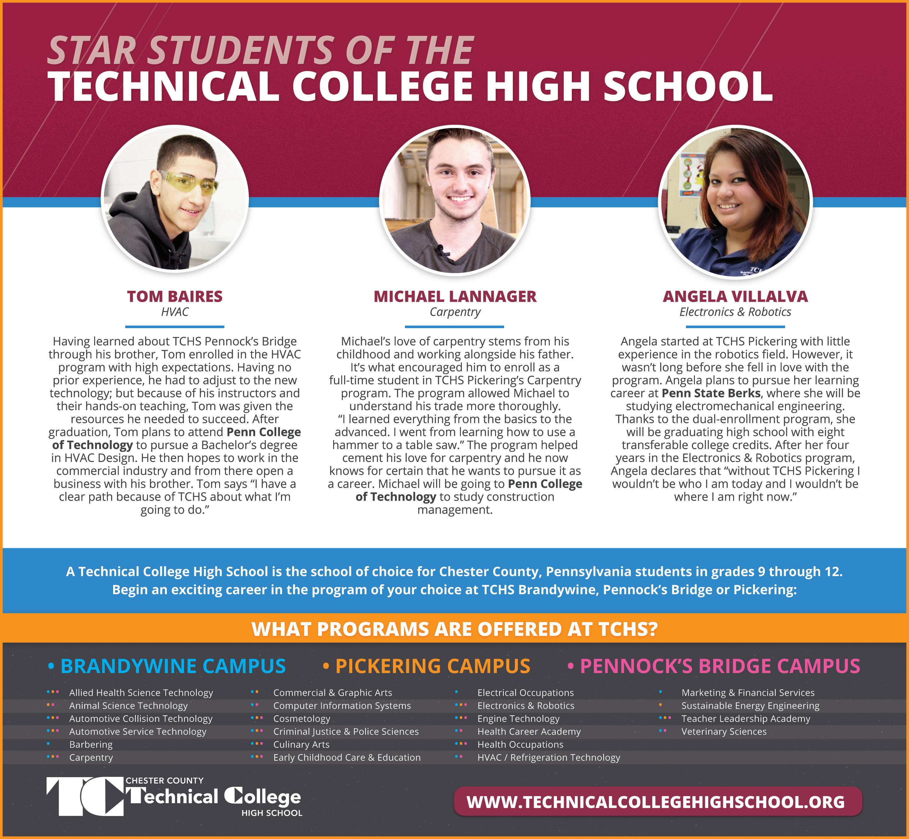 For more information, visit www. technicalcollegehighschool.org.