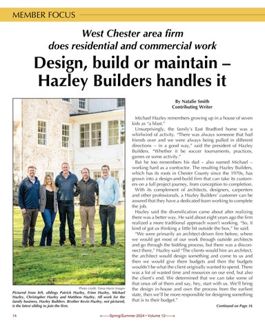 Like some of the aforementioned businesses, Hazley Builders has evolved through the years. The company has its roots in Chester County since the 1970s, and has now grown into a design-andbuild firm that can take its customers on a full project journey, from conception to completion.