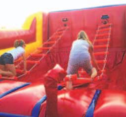 This is a great test of balance, coordination, and perseverance! Each of two competitors tries to climb up one of the swiveling rope ladders and the first one who makes it to the top - wins! Players may also just opt to test their skill and see how many attempts it takes to get to the top. Be very creative in how you reach the top! But, no fear, if you make a mistake, you drop onto the inflatable cushion below.