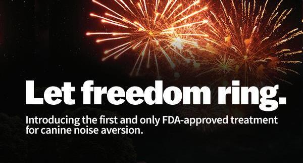 Askusaboutthefirstand onlyFDA-approvedtreatmentfor caninenoiseaversion.AtleastonethirdofalldogsintheUnitedStates sufferfromnoiseaversion.This FourthofJuly,yourdogdoesn’thave tobeoneofthem.