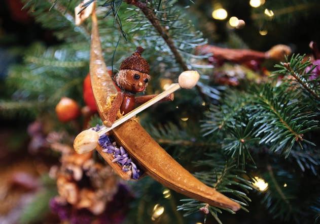 The Wildlife Tree is swathed in skeins of yarn, while hundreds of handmade ornaments serve as a holiday buffet for wildlife. The 25-foot Gardener’s Tree showcases some of nature’s most unique shapes – ornamental gourds.