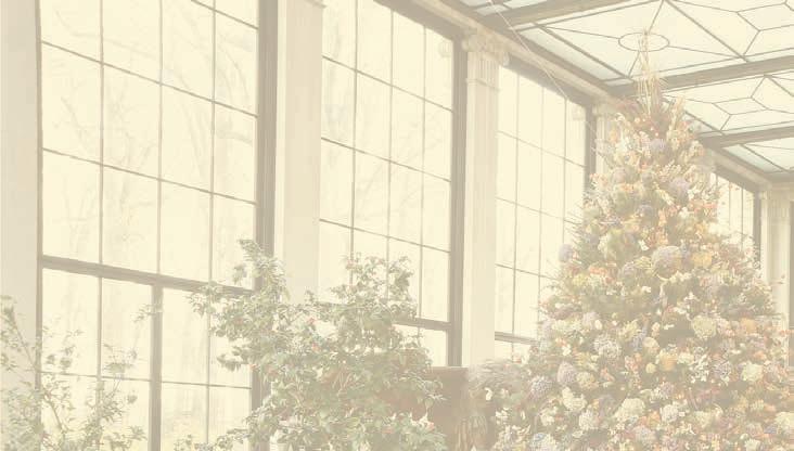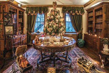 The Music Room is transformed into a confectionary shop decorated for the holidays, featuring two 18-foot Fraser firs dripping in pastel-colored Christmas candy. In a collaboration with America’s oldest candy store, Shane’s Confectionary in Philadelphia, the Music Room showcases vintage candy molds and clear toy candies, a Pennsylvania German Christmas tradition. The display counter is filled with horticulturally themed chocolates, lollipops and cookies, while apothecary jars are filled with artistic lollipops and other sweet favorites.