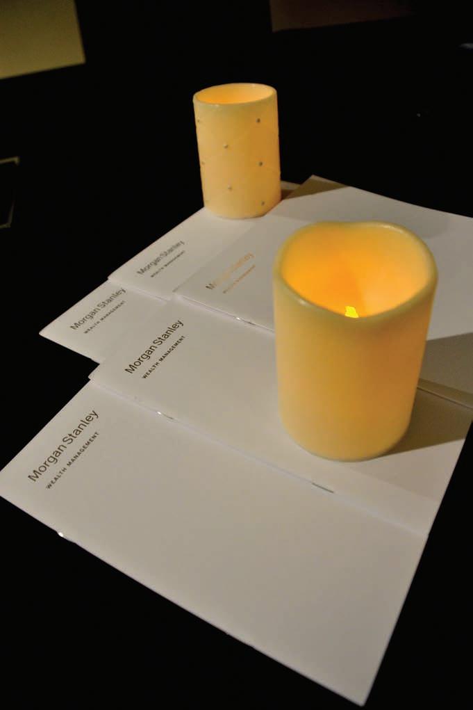 Shortly after noon on a recent November workday, the conference room at the Greenville offices of Morgan Stanley Wealth Management is transformed from the corporate to the spiritual -illuminated by two white battery-operated candles placed in the center of the table.