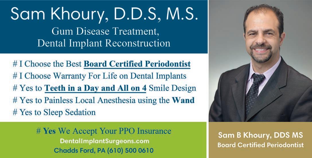 Jenny Chen Pediatric and Family Dentistry is located at 207 North Guernsey Road, West Grove. For more information, visit the website at www.smilesinpa.com or call the of ce at 610-869-0991 to speak with bilingual staff.