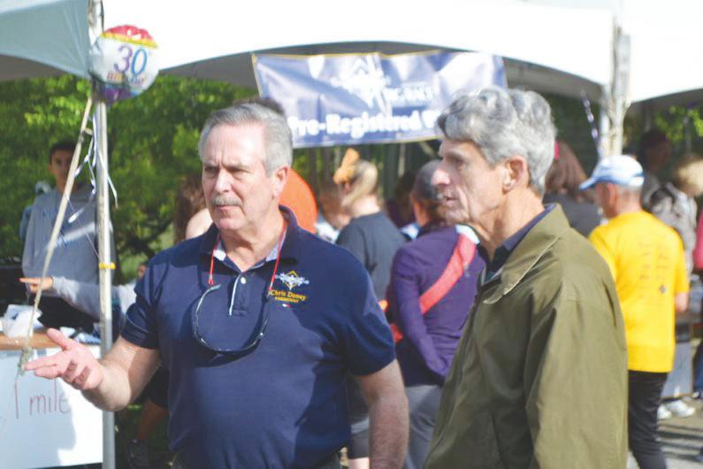 Current Kennett Run Charities President Bob Merkle, right, consults with his predecessor Chris Daney before the start of the 2019 Kennett Run.