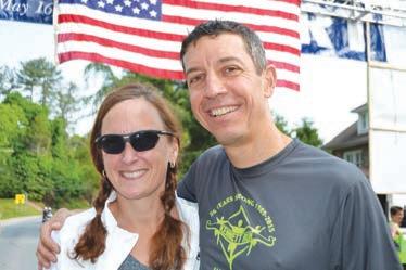 “We were married on May 19, 2001, so this has become our anniversary race, and we run it together,” said Christoper, who trained on his own for the last eight weeks to prepare for the event. He then pointed to his wife, who wore a shirt that read, “I hate running.”