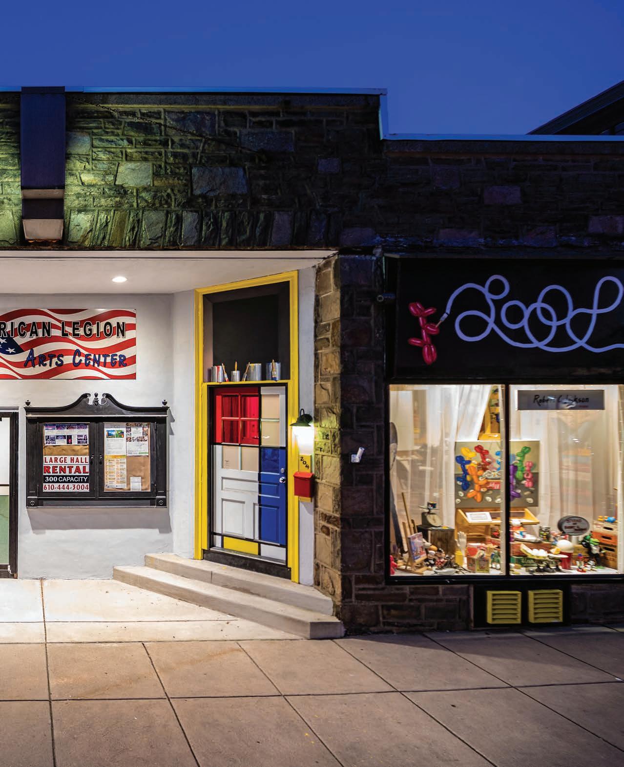 the Midwest. Returning to Kennett Square in late July, he found out about the American Legion building. When an attorney moved out of the corner storefront space, Nelson started knocking down interior walls and renovating the space, which he hopes to open soon as a combination of studio and “man cave,” he said, smiling.