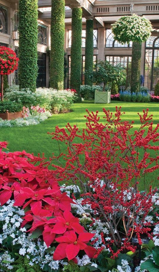 Thousands of poinsettias, amaryllis, fragrant paperwhites, and other floral finery fill the Conservatory. Living wreaths fashioned from everything from orchids to succulents, and trees fashioned from a variety of plant materials, highlight the skills of Longwood’s many horticulturists.