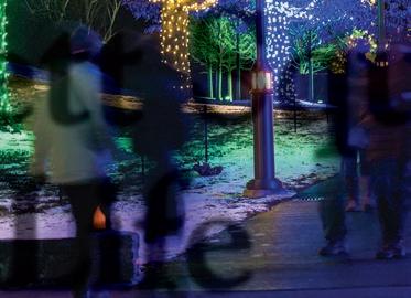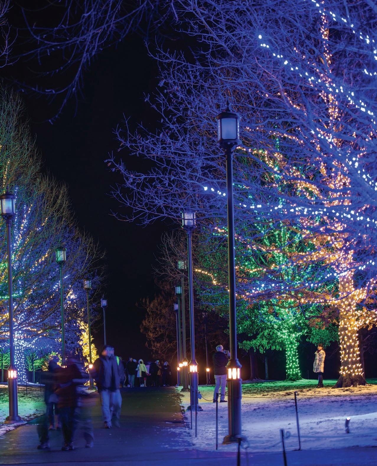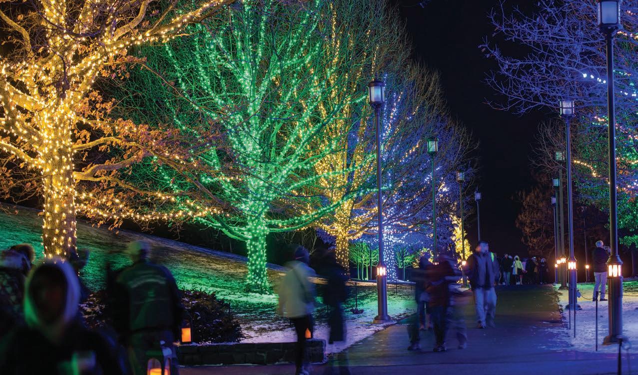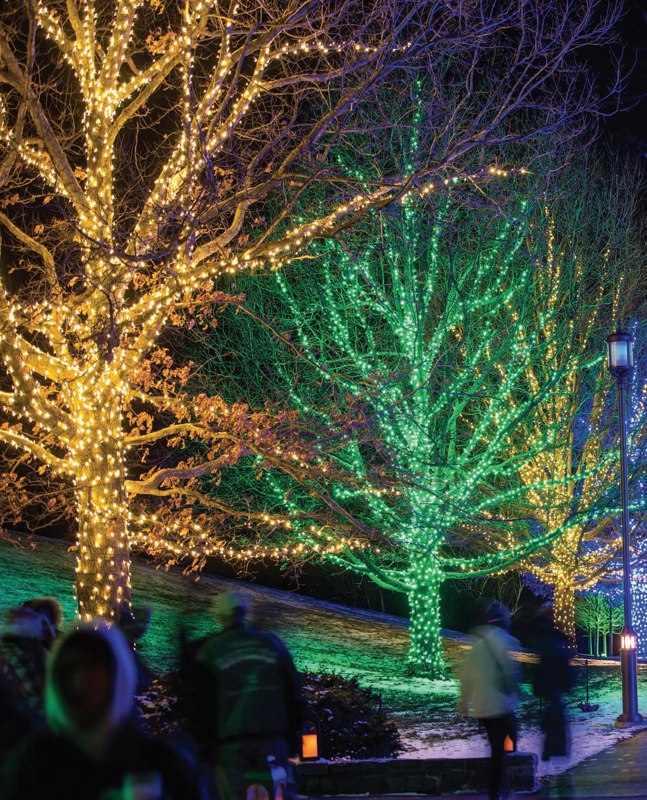In the Meadow Garden, visitors stroll through a 140foot tunnel of light in the winter landscape, and discover a grove of glowing architectural orbs that pulse and change to the rhythm of holiday favorites.