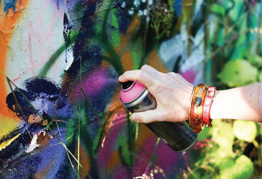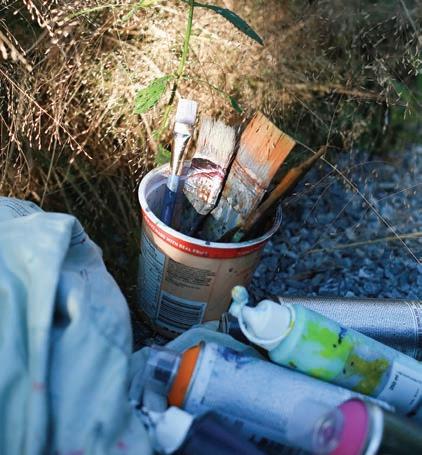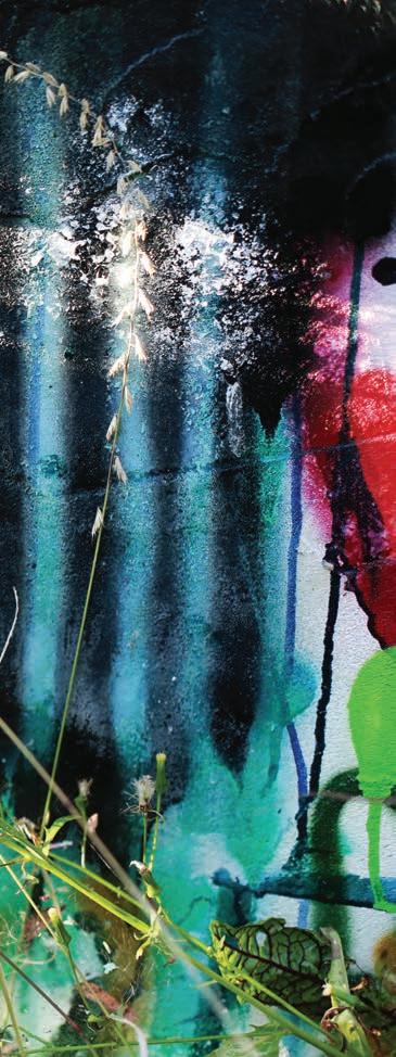 “The students approached me after seeing some of my paintings that hang in Philter in Kennett Square,” Kist said. “They were looking for an artist who could visually reflect the graffiti-like nature of vandalized urban dwellings – specifically, those that are decaying in an industrial sense. The juxtaposition of man-made structures that are left to become unsightly, melded with what can come from scattered weeds, is beautiful.”