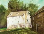 stack of tiny watercolors. “I have hundreds of these. I do these as I’m moving along. Some of them are finished works, some end up as studies. I do them to preserve things I see before they’re gone.”