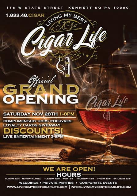 One of the newest additions to downtown Kennett Square is something completely different. It’s Living My Best Cigar Life. The new store at 116 West State Street is truly a premium cigar shop complete with all kinds of cigar and cigar lifestyle accessories, plus a tasting room where you can enjoy your latest purchase.