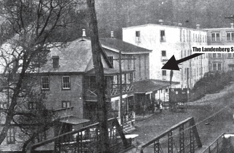 Right next door stands the Landenberg Hotel, built around the same time that the store was constructed. Its Victorianstyle wooden columns remind the viewer of a scene from yesteryear. Rumor has it that the hotel once operated as the town brothel. Today the building has offices for local businesses. Just up the street stands the Landenberg Bridge. Covered bridges were popular back in the 1800s—and White Clay Creek did have one then, later replaced by an arched iron structure. In 1898, a Pratt Pony Truss Bridge manufactured by the Phoenixville Iron Works was built over the creek. The new bridge had a cantilevered walkway and an 18-foot width, allowing for teams of horses to traverse the structure, along with enough room for a newfound contraption—the automobile. The bridge was placed on the National Register of Historic Places in 1988, but due to later engineering changes, the structure was de-listed in March 2010 by the Pennsylvania Historical and Museum Commission.