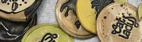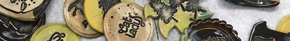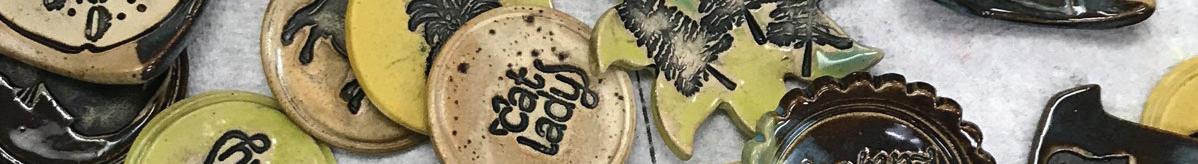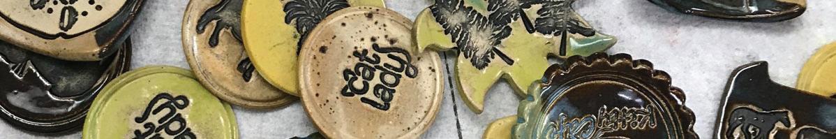“That’s how it started. I called them Adirondack Nature Buttons. It was all reclaimed clay and reclaimed glaze that I would get from school but ended up in the trash bin. I would trash pick it, reclaim it … from kids dropping it on the floor it would get hair and all kinds of nasty stuff in it. You soak it and you bleach it to make sure all the impurities are out and then you sift it to make sure there’s no rocks, bottle caps or whatever in it.