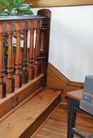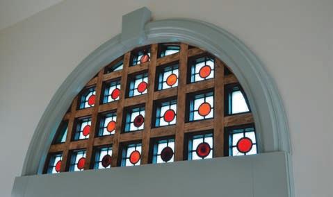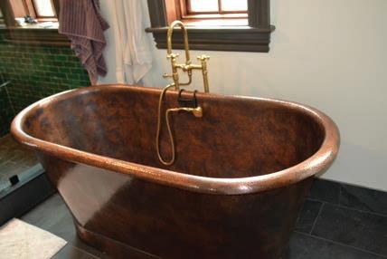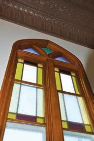 Following the completion of the home’s major construction projects, Angus and Esther took on the role of interior designers, adding cosmetic elements like repairing and installing a stained-glass, half-circle window that had been in an 1887 church; and outfitting the home with one-of-akind accent mark accessories like a galvanized steel cabinet they found at a salvage yard in Philadelphia.