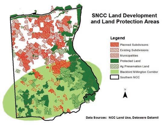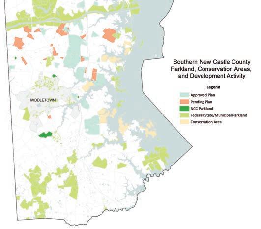All images courtesy Planned and existing development in southern New Castle County is various forms of red on this map, prepared for the task force. Preservation areas are in green.
