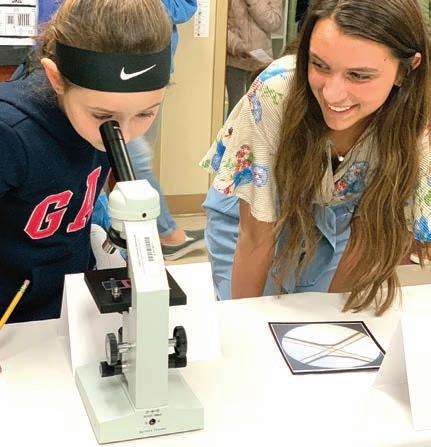 Jillian Wyatt set up three stations – footprints, strands of hair and fingerprints on bowls of porridge – for pupils to figure out who ransacked the Three Bears’ house. The suspects were the Giant, the Big Bad Wolf, the Wicked Witch, Captain Hook and Goldilocks. “They were all characters that the kids would know,” she said, and the detectives “knew right away” who the guilty party was. The evidence all pointed at Goldilocks, said Jillian, who plans to major in nurs ing and minor in forensics in college.