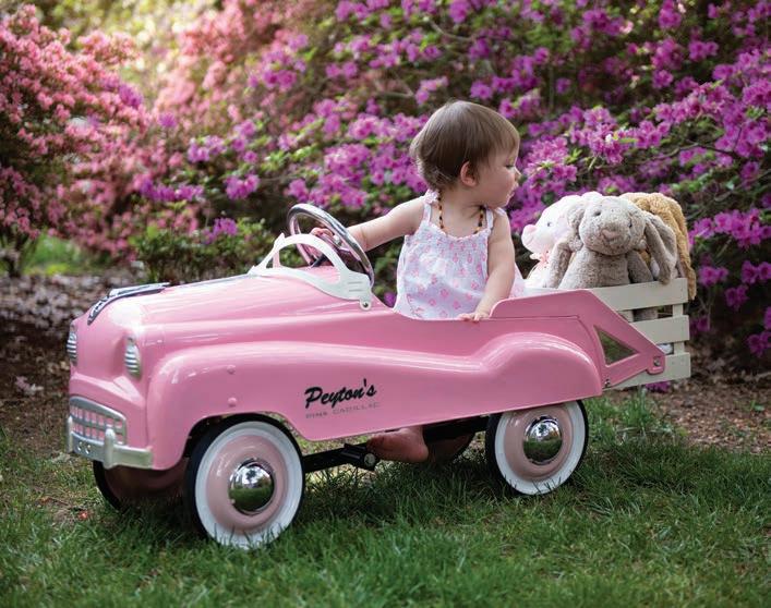 Against the backdrop of thousands of azaleas, the youngest of five children plays in a pink pedal car restored by her grandfather.