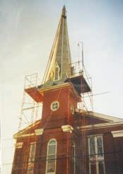 PHOTOS: Opposite page; Photo by John Chambless, Bethesda United Methodist Church celebrated its 200th anniversary in February. Top of page; Photos by John Chambless, The floor of the church has been gently scuffed by generations of worshipers. The church was put on the National Register of Historic Places in 1978. Pastor John Hornberger in the church cellar, where the 1800s earth walls can still be seen. Courtesy photo, The steeple was reslated in 1995. The spire is still the highest point in Middletown.