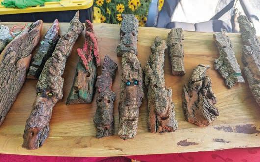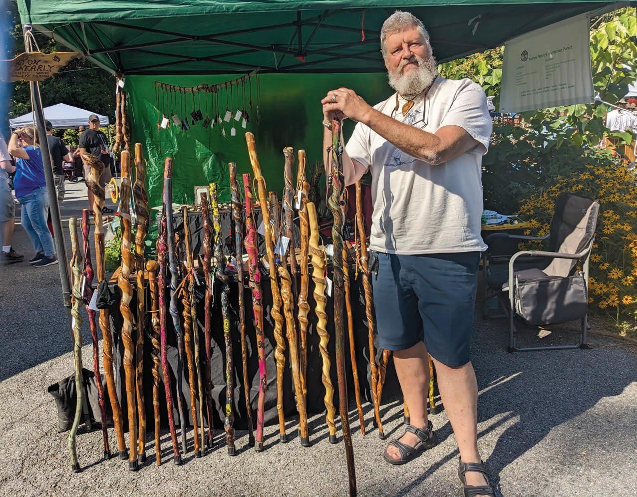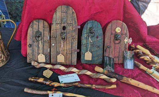 Some of his formative memories involve “whittling a stick into oblivion.” One of his four books is The Tree Mend Us Path, an essay collection that covers “a lot of time with trees” and meditation that helped him heal from a brain tumor. A current hobby is crafting what he calls “forest art,” including walking sticks, staffs, wands, wood spirits, doors, fairy homes, amulets, talismans, games and incense burner, made of wood, other natural materials and vintage accoutrements that he adds.