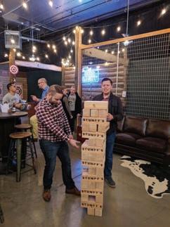 Adding to the fun are the two giant Jenga games that were an afterthought purchase when the site was opening, but now have become an essential part of a night at Stumpy’s. Whenever someone isn’t throwing, they can be building towering structures that inevitably fall with a mighty clatter, getting cheers from everyone in the club. “It’s a great addition for some extra fun,” Anne said.