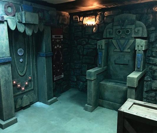 Two escape rooms are open now, and a total of five are planned. They look like Disney theme park rooms, with elaborate sets and props that immerse participants in a fantasy world. “Right now we have Curse of The Jade Skull, which is our Aztec room, and a 1920s speakeasy called the Blind Tiger,” said Joe DiDomenico, the vice president of design and creative director. “It’s about trying to stop the mobster Mugsy Malone. Each room will have a game master who’s part of the game. They play along with you, and help you by giving clues from a control center. They talk to you via microphone. The game masters work with the teams so everyone has fun.”