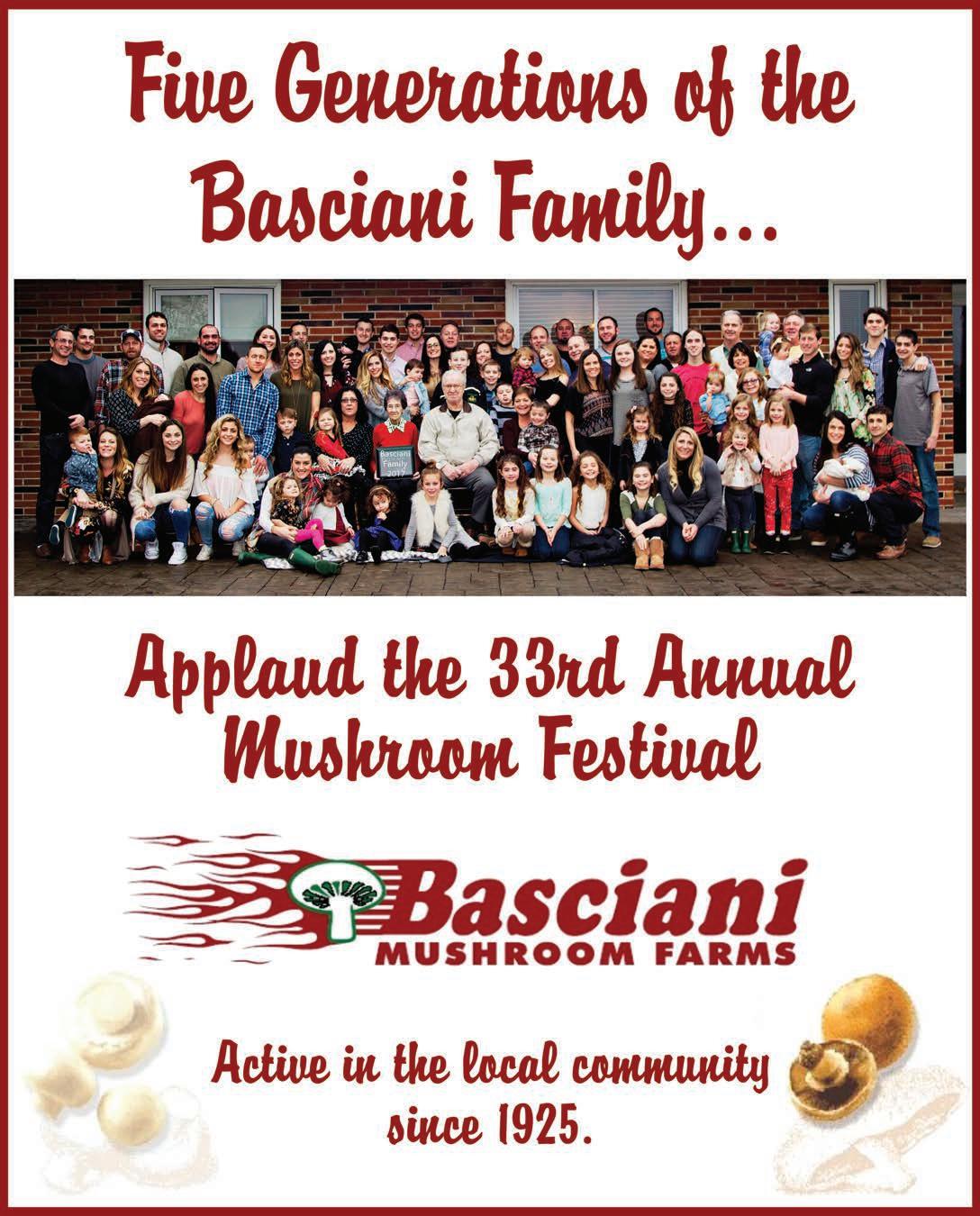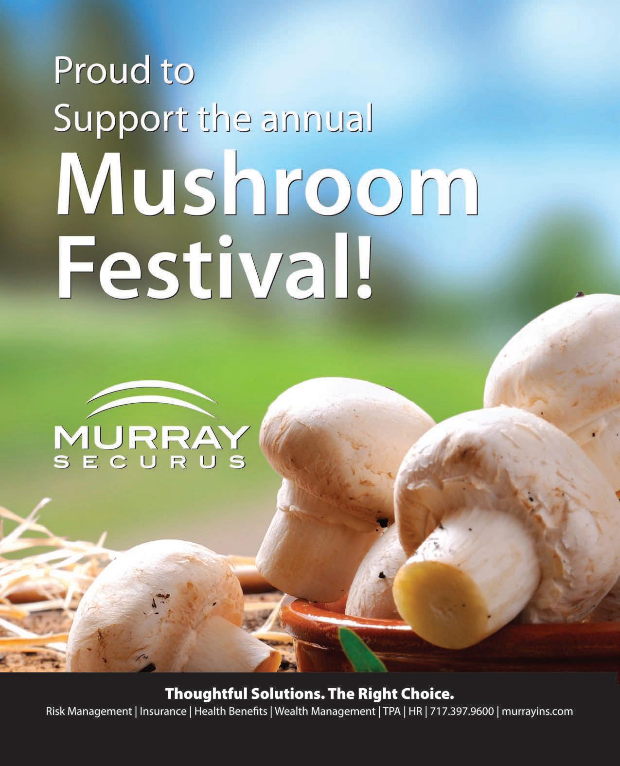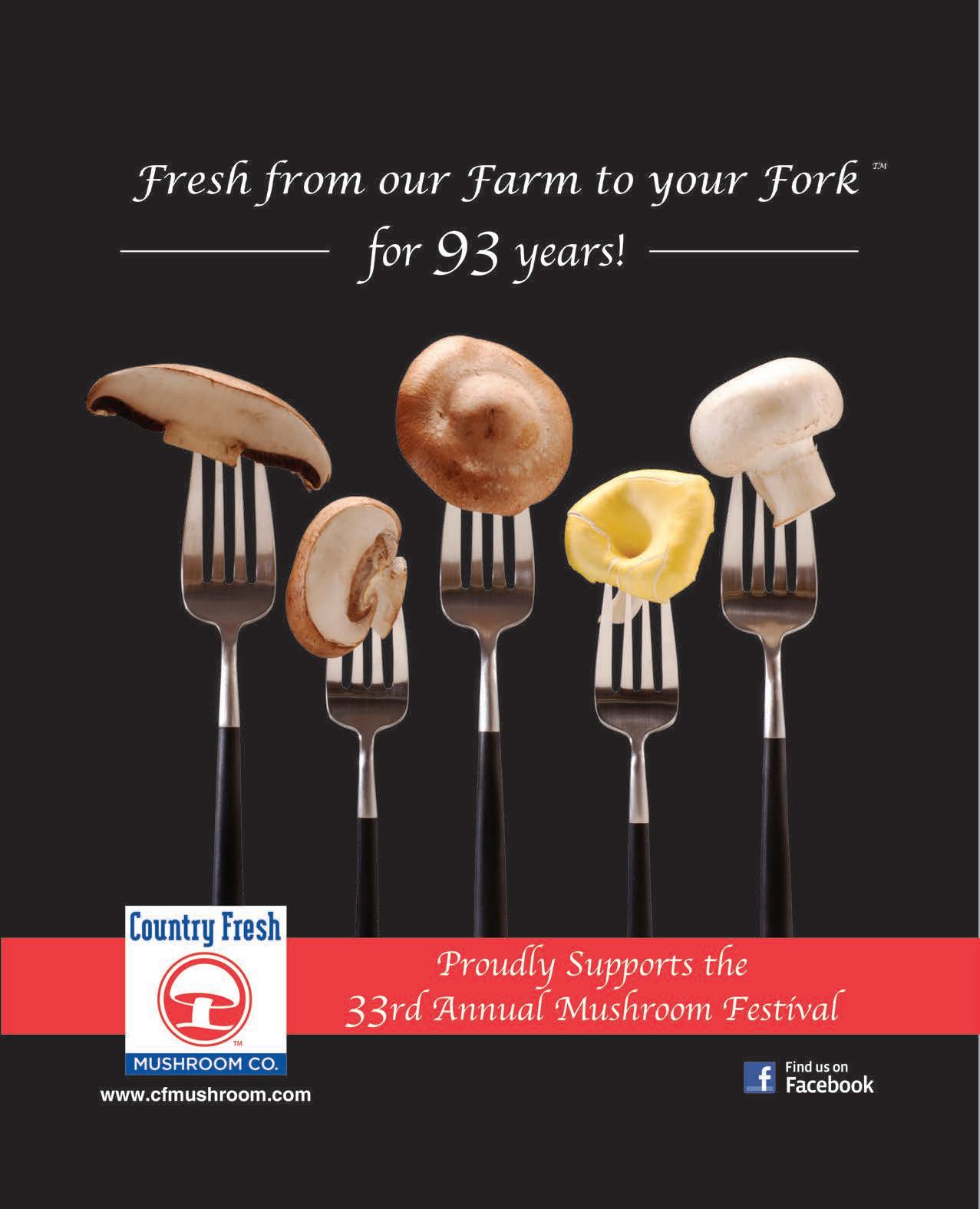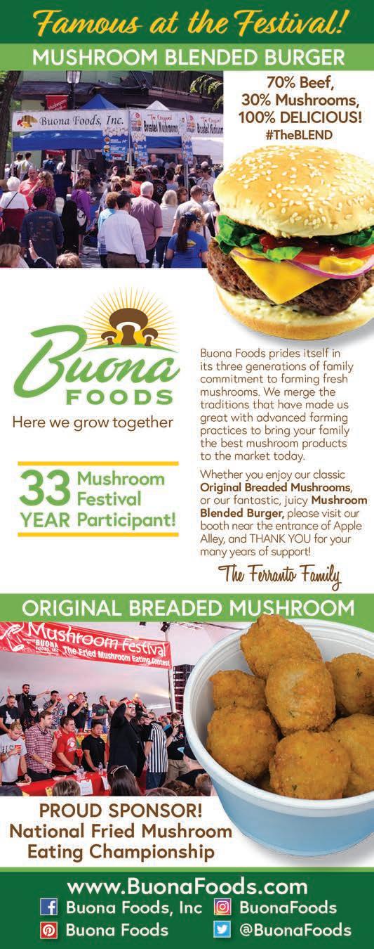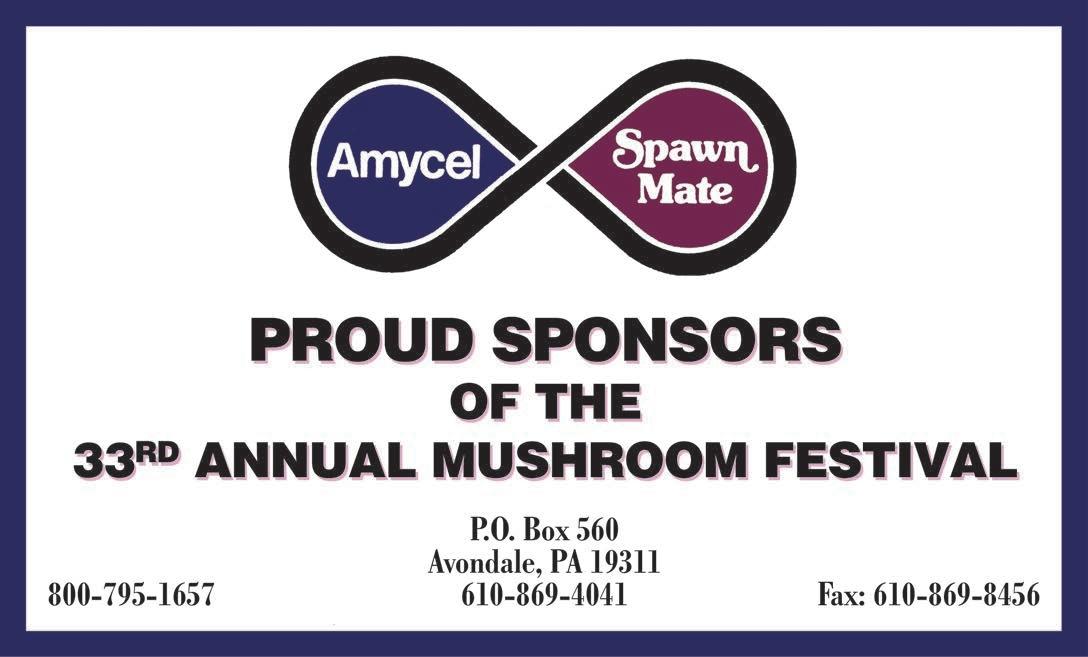 July with the passing of Rich Forte. He played an integral part in creating the Growers’ Exhibit and worked tirelessly each year to tell our visitors the story of how mushrooms are commercially grown in the region. Rich was a part of the region’s mushroom industry for 50 years. We miss him greatly. The 33rd Annual Mushroom Festival is dedicated to his memory.