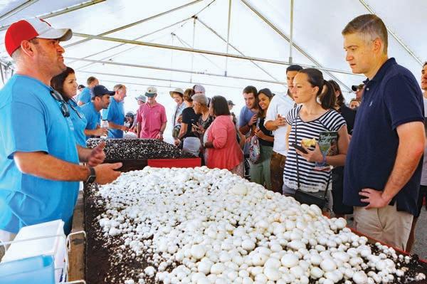 Also on South Broad Street is the large growing tent where visitors can see and even touch the trays and contents where mushrooms actually grow. Mushroom growers are there to answer questions.