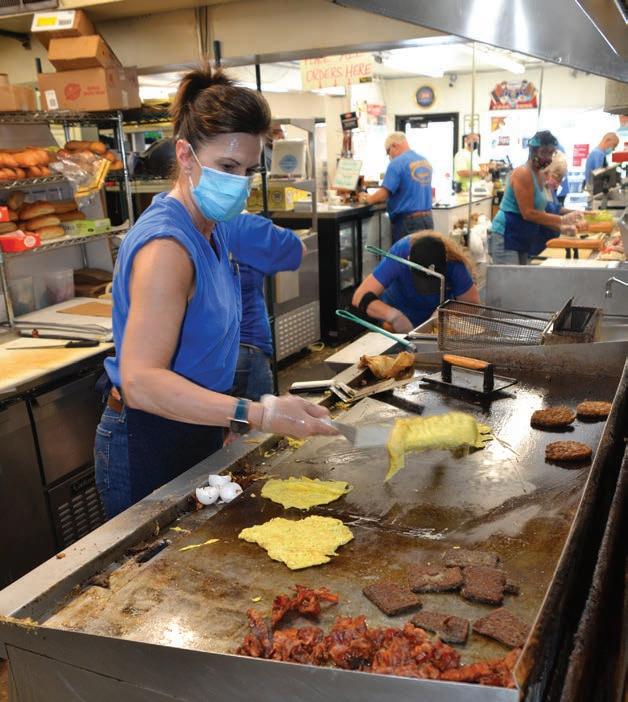 Barbara Malin prepares breakfast sandwiches for hungry customers.