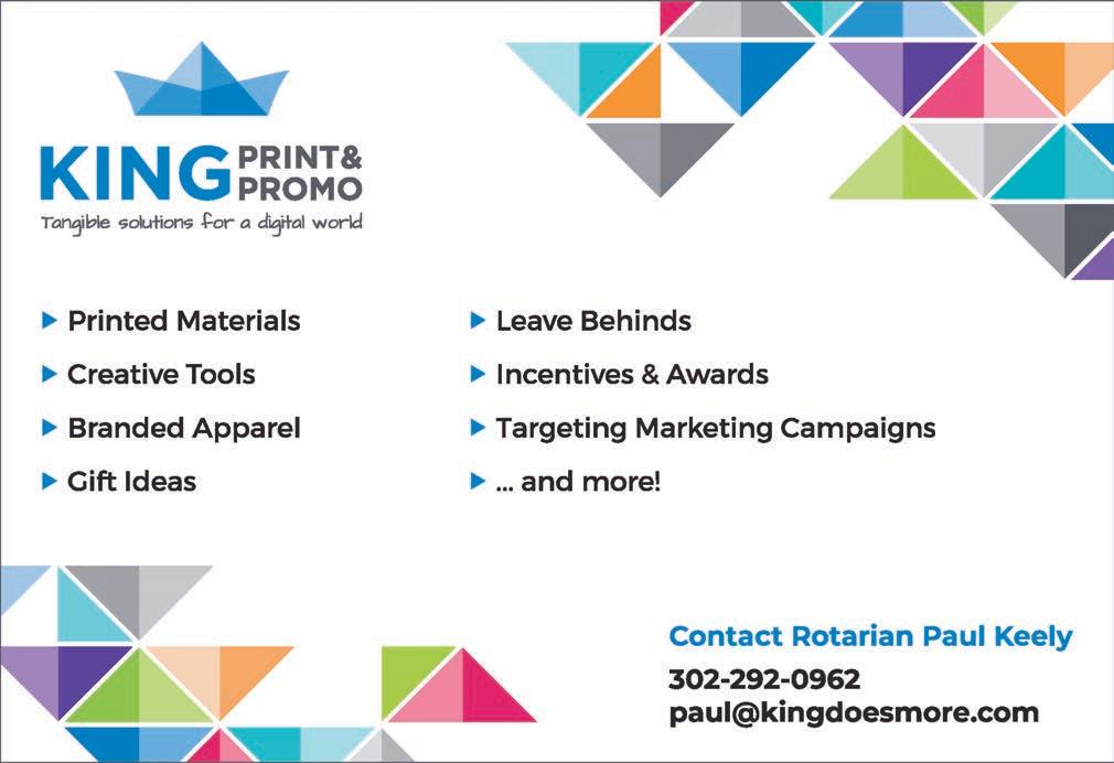 Paul owns King Print & Promo, providing tangible marketing and communications tools to businesses. He is married to his high school sweetheart Eileen, has four children and three grandchildren. As a past president of this club, Paul is constantly inspired by the great work and big hearts of his fellow Rotarians.