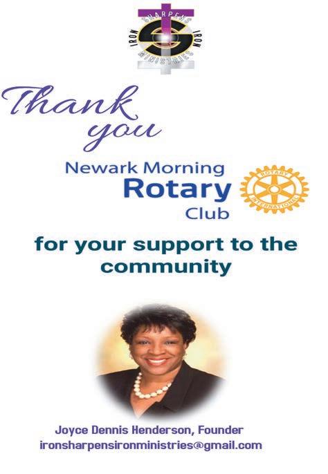 Since the inception of our service organization in February 1999, we were determined to be recognized as a force within the Newark community. We thank our advertisers, all who patronize their businesses, sponsors, and fellow Rotarians, who make this Report year after year possible. Your generosity and kindness have made our community a better place for all.