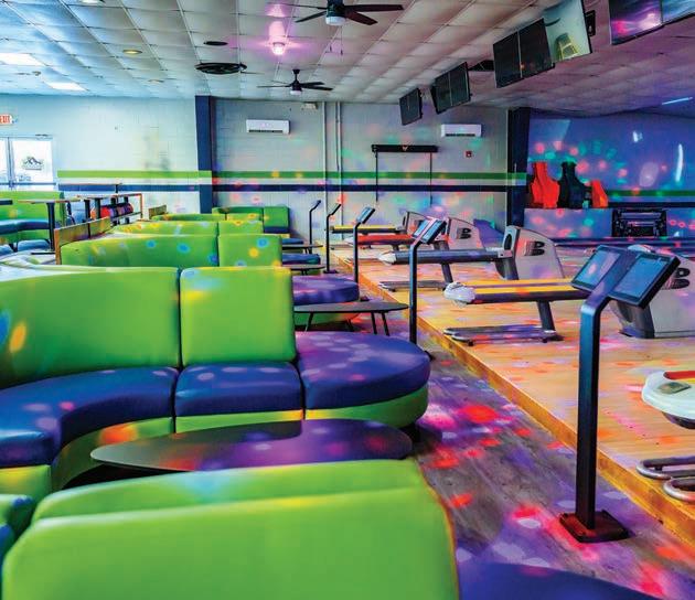 Renovations began on May 11th 2023, and within 3 months, $300k was invested in upgrading electrical systems, a brandnew electronic scoring system, LED and disco lights, new flooring, new shoes, new balls, new menu items, and a new color scheme that divided the internet. “It went viral when we posted the color scheme, and I got a lot of backlash over it. I had to trust my gut though and I think it worked. To me it screams fun!” says Catt. The blue and green color scheme weaves throughout the building, tying together the walls and brand new furniture that looks great in full light or black light. You would never know that this was Catt’s first jump into business management, but knowing her industry like the back of her bowling hand has led her to success. Catt began bowling at the age of 4, and by the time she was ready for college, the sport gained her access to scholarships to help complete her Bachelor’s degree in Integrated Sciences from Kent State, Ohio. After graduation, she worked for an oil company in Lancaster. The decision to leave her job and her industry was easy once the opportunity to reinvigorate the alley came around. Clifton’s mother, Sandra DuVall of DuVall Bus Service, backed the venture and Catt ran full steam ahead with her plans. “Sandy is my superhero. The way she runs her business is amazing and if I can be a fraction of the business woman she is I’ll be successful.” gushes Catt.