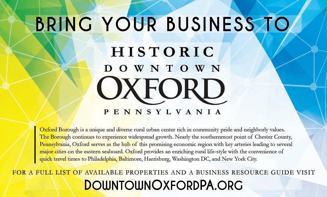 If you are looking to expand your business to an additional location or to a larger space, or to start a business, please reach out to The Oxford Borough (oxfordboro.org), Oxford Mainstreet Inc. (downtownoxfordpa.org) and the Oxford Area Chamber of Commerce (oxfordpa.org). We would like to assist you in making downtown Oxford your new business address.