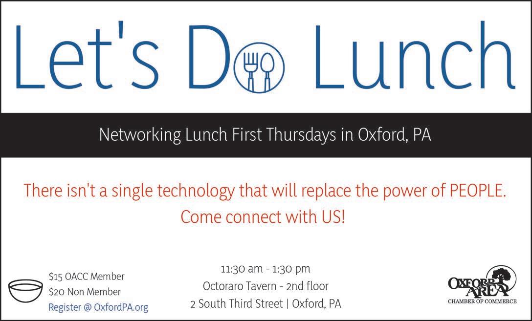 Please consider joining the Oxford Area Chamber of Commerce and attending our monthly meetings, which are held the second Tuesday of each month at 8 a.m. (except for July and August) at Vista Ridge on the campus of Ware Presbyterian Village.