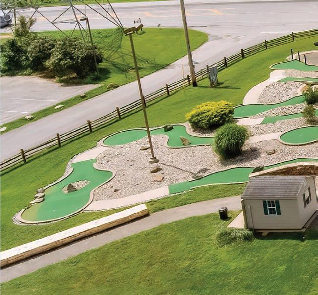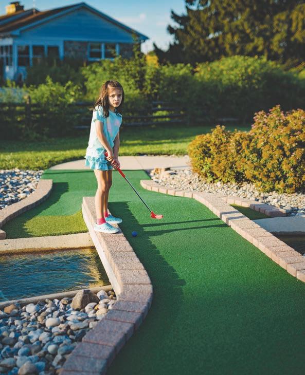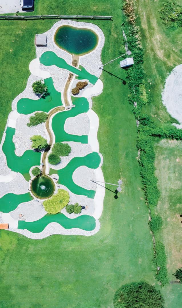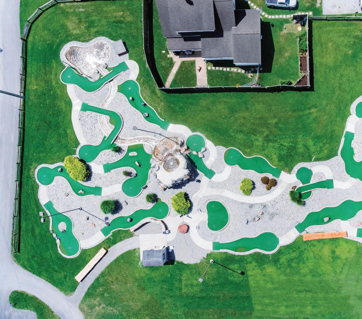 transforming a sprawling thicket of woods, bushes and trees into a polished, 18-hole miniature golf course with clean lines and some interesting challenges. And guess what? All ages are welcome. Everybody can play. Mom Dad, kids and grandparents. In fact, kids and grandparents comprise