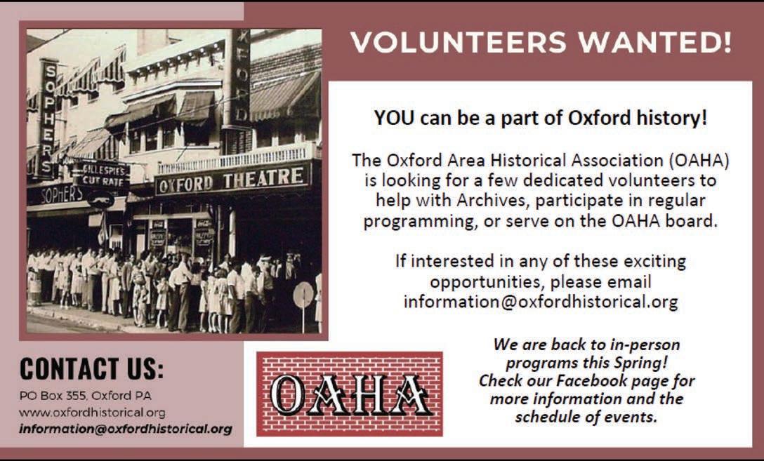 those who have sacrificed it all for our freedoms. It will look new to many but will really allow all of us to focus on the true meaning of the holiday and to honor and remember those brave men and women in our military on their day of remembrance. Follow our social media accounts or visit our website, OxfordPA.org for further details on the event on May 30th.