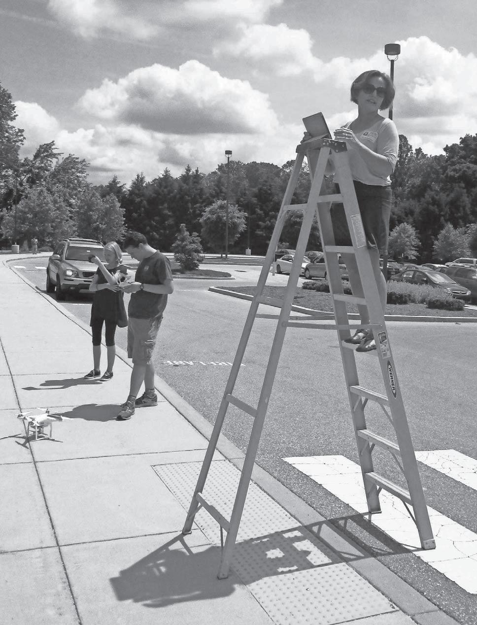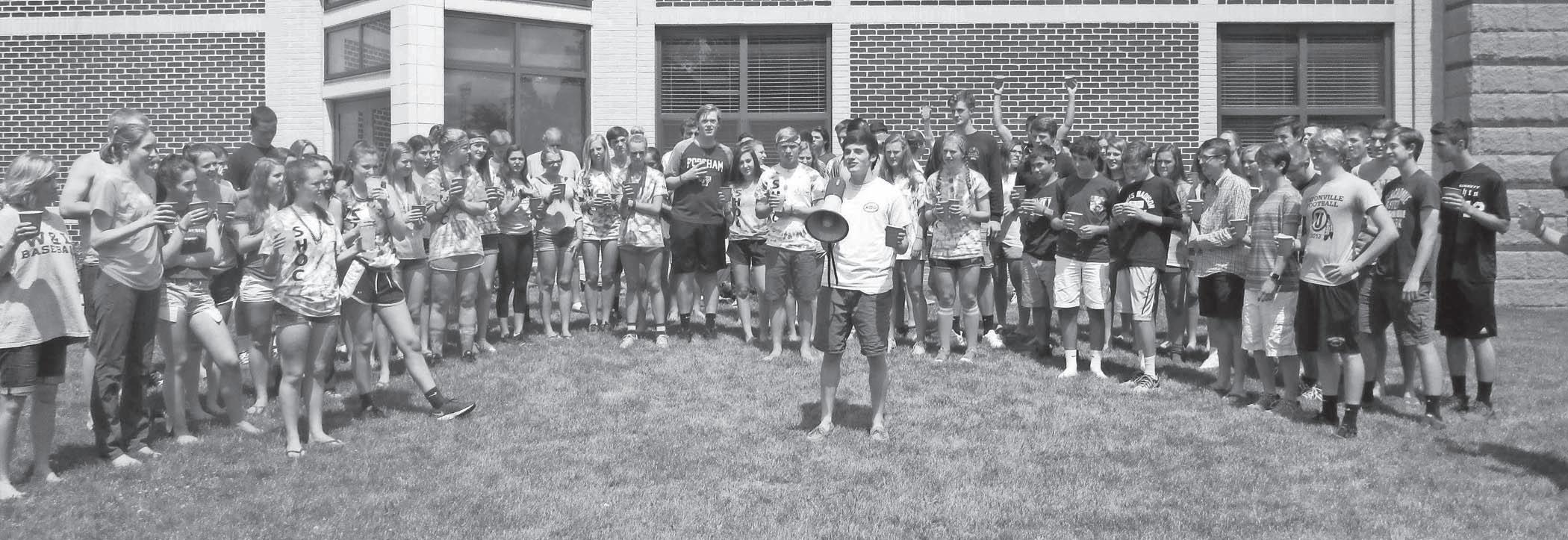 Unionville High School principal Jim Conley took part in the event, helping to line up the teens, and joining them in getting doused with ice water. While Elizabeth Muscato perched on a ladder to film the event, and the school’s drone was deployed overhead to get aerial footage, Mikey took the megaphone.