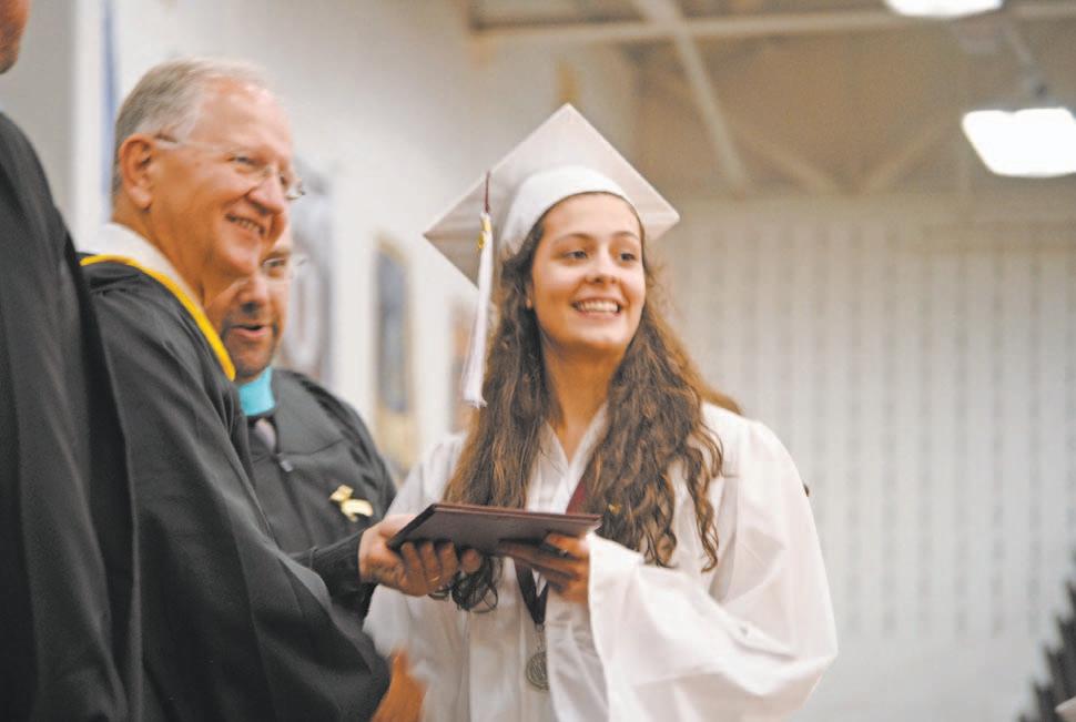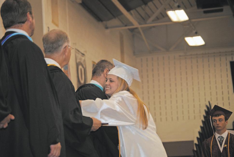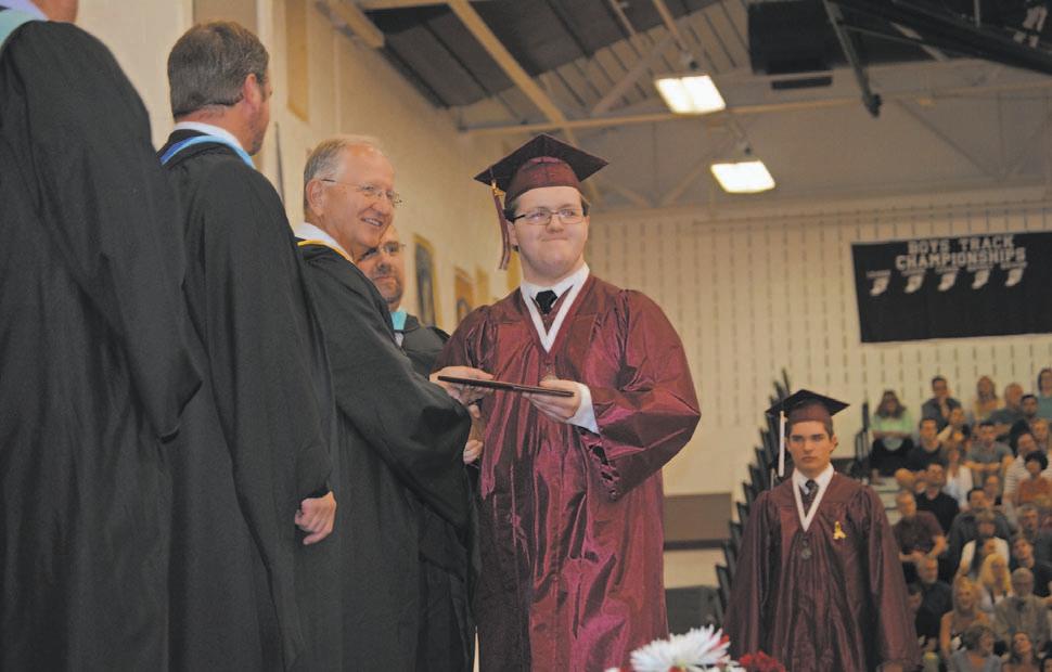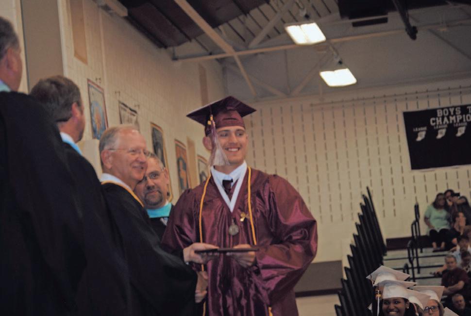 Superintendent David Woods, school board president Richard Orpneck, high school principal Christopher Dormer, and assistant principal Michael Garrison congratulated each of the graduating seniors as they received their diplomas.